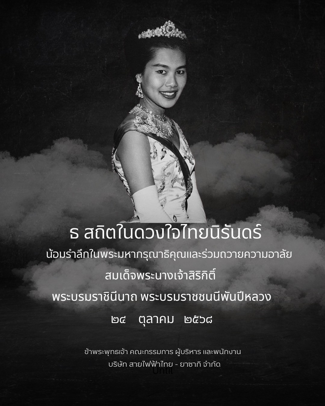 ธ สถิตในดวงใจตราบนิจนิรันดร์ น้อมรำลึกในพระมหากรุณาธิคุณ และร่วมถวายความอาลัยแด่สมเด็จพระนางเจ้าสิริกิติ์ พระบรมราชินีนาถ พระบรมราชชนนีพันปีหลวง